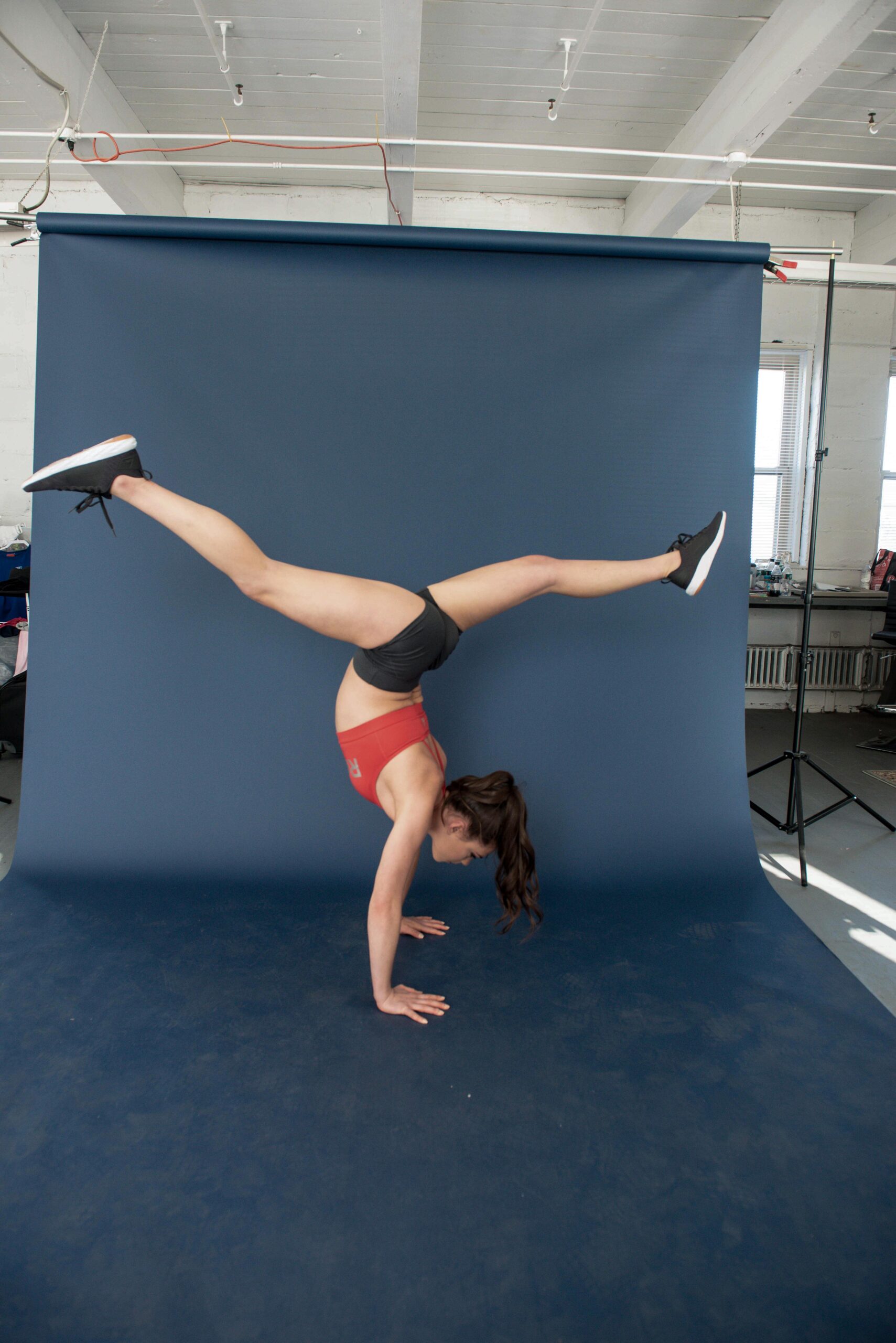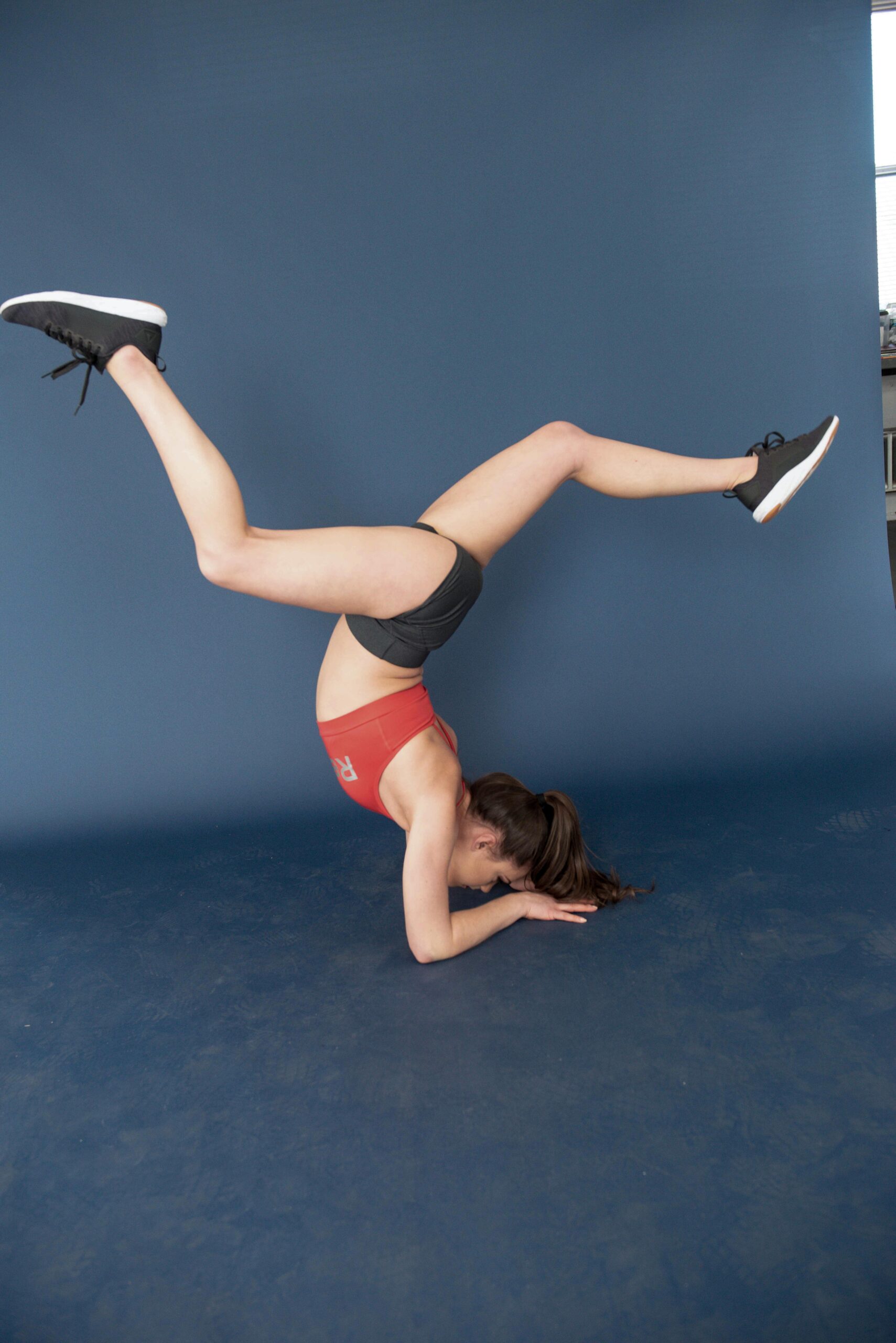 CC iIN A RED REEBOK TOP AND GREY REEBOK BOTTOMS